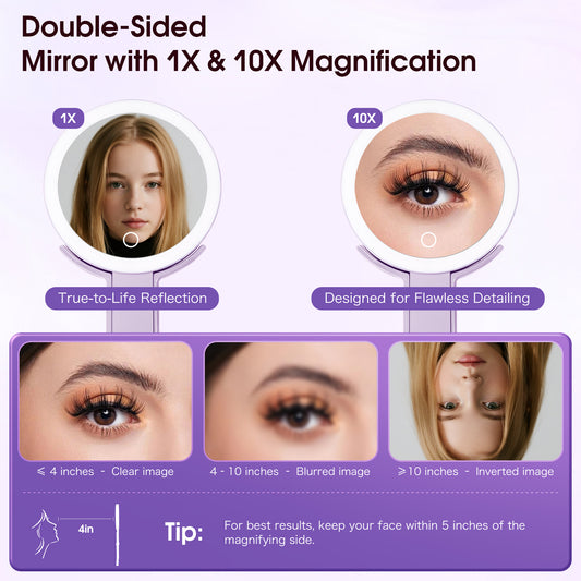 Dual-Sided LED Makeup Mirror – 10X Magnification, 3 Light Modes, Travel-Friendly Design